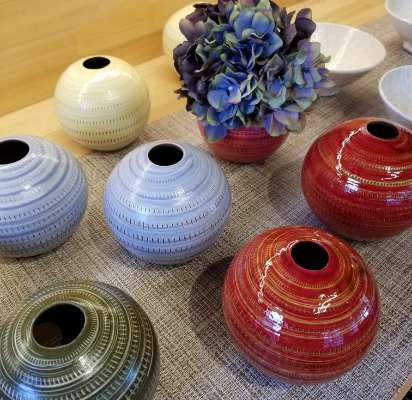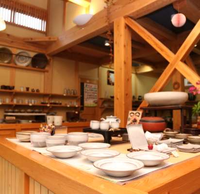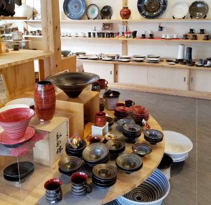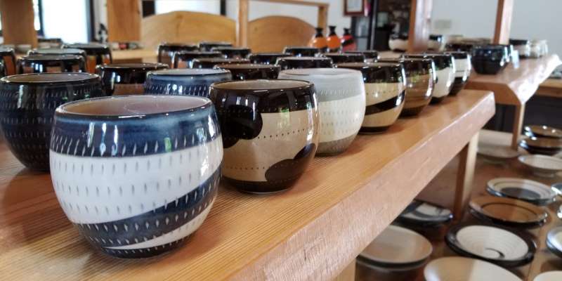 ヤママル窯是一個極具特色的窯,不僅繼承了小石原燒的傳統,更透過自然的顏料將陶器上色。 有很多作品都帶有非常華麗的花卉畫,這些顏料使用朱紅色,黃色和綠色等顏色,並混合了小石原的獨特器皿樣貌。 在展廳中,有該窯目前致力於研究的適合現代餐桌的新式小石原燒,例如以自然為主題的橡樹果實和蘑菇製品,以及具有金屬光澤的器皿。另外,店內的佈局也很可愛,會讓女性感到開心。